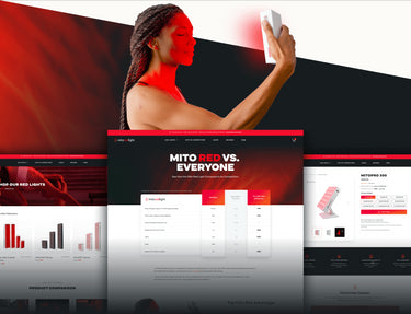 From handheld mobile red lights to total wall panels towering over six feet tall, we helped Mito Red showcase the size varieties of their product line in an informative, intuitive page flow.