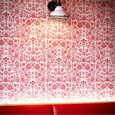 With the size of the building and its history, we knew from day one lighting would be an integral part of the creative direction. More than a handful of LED neons grace the space alongside red rose patterned metal panels and custom wallpaper.